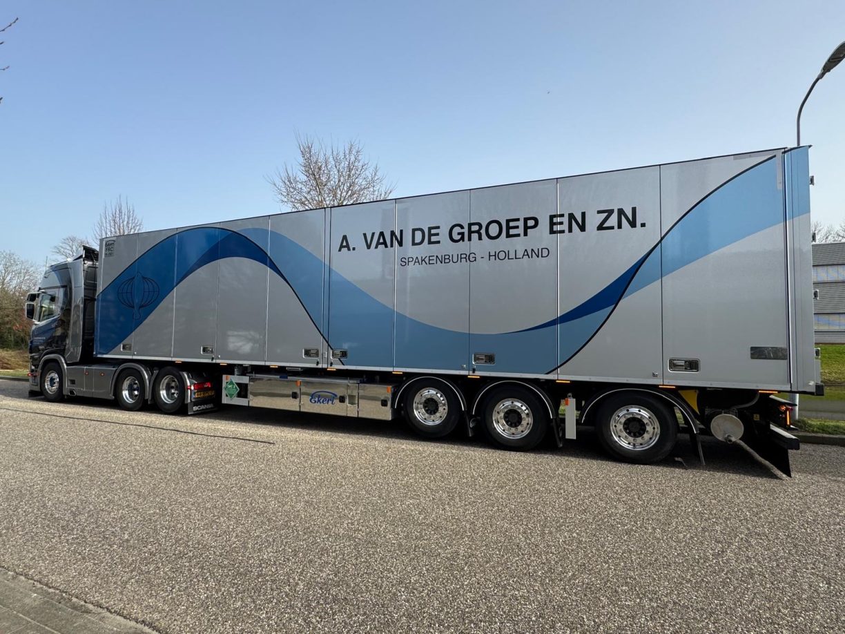 Voor A. van de Groep en Zonen B.V. hebben wij twee Ekeri FRC koelopleggers mogen leveren. De trailers zijn grotendeels identiek uitgevoerd, maar verschillen op een aantal technische punten om optimaal aan te sluiten bij de inzet van de klant.
