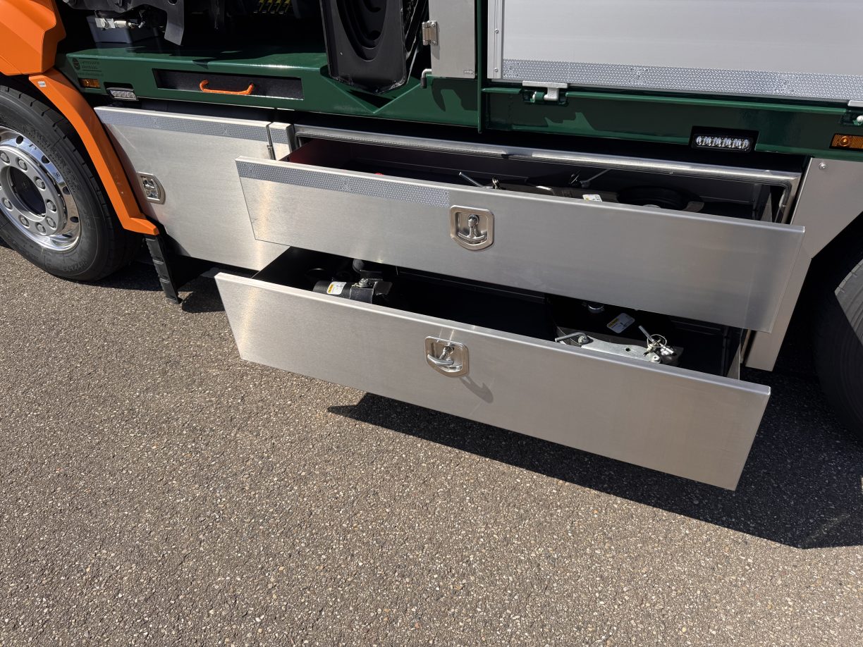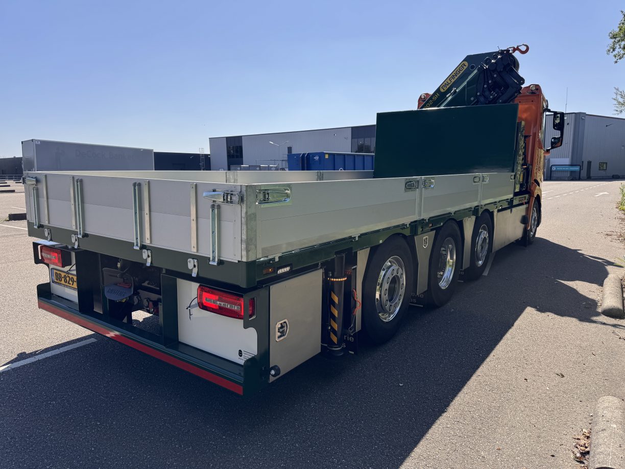 Deze kraan biedt veel kracht én bereik om zware materialen op de bouwplaats snel en veilig te verplaatsen. De onderbouw werkten we af met rvs kisten en rvs beplating. Daarmee heeft de wagen extra opbergruimte en een nette, strakke uitstraling.