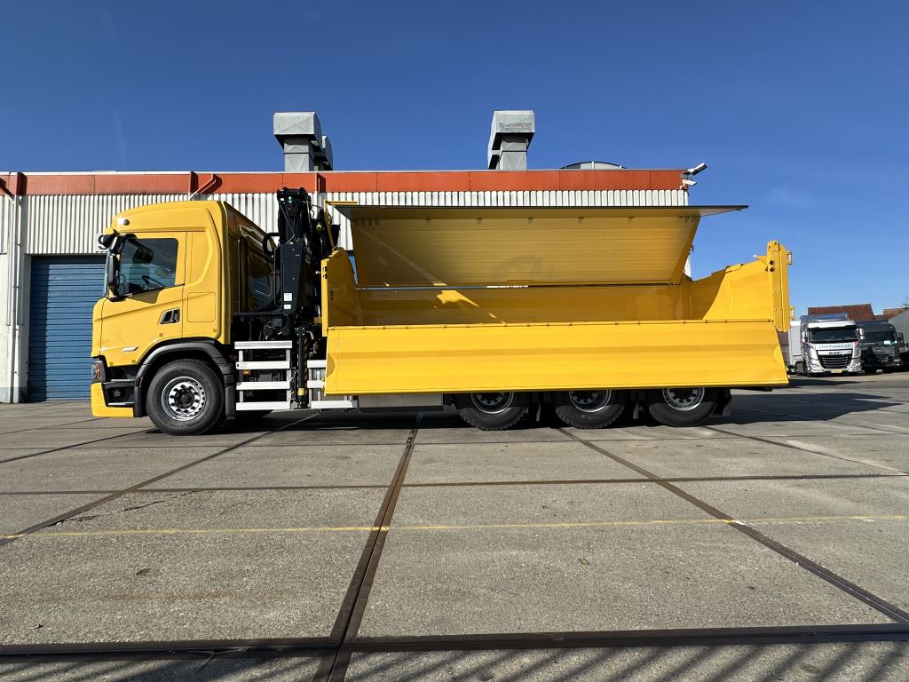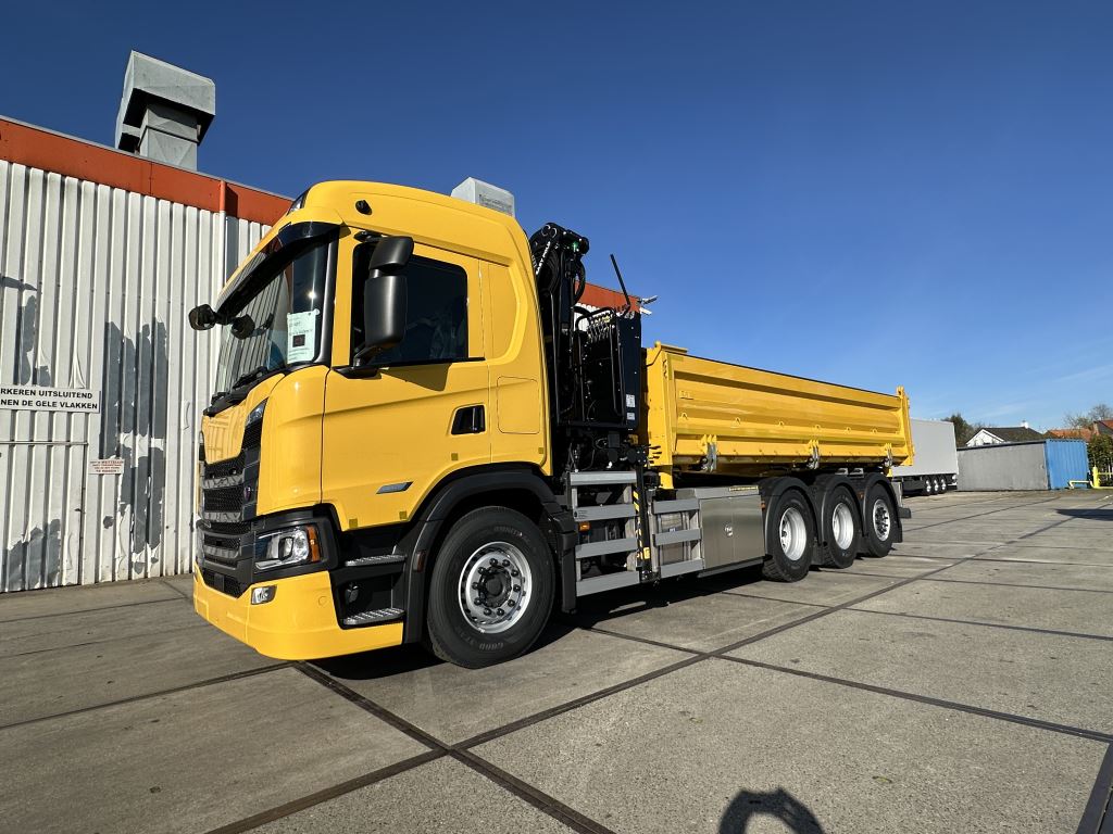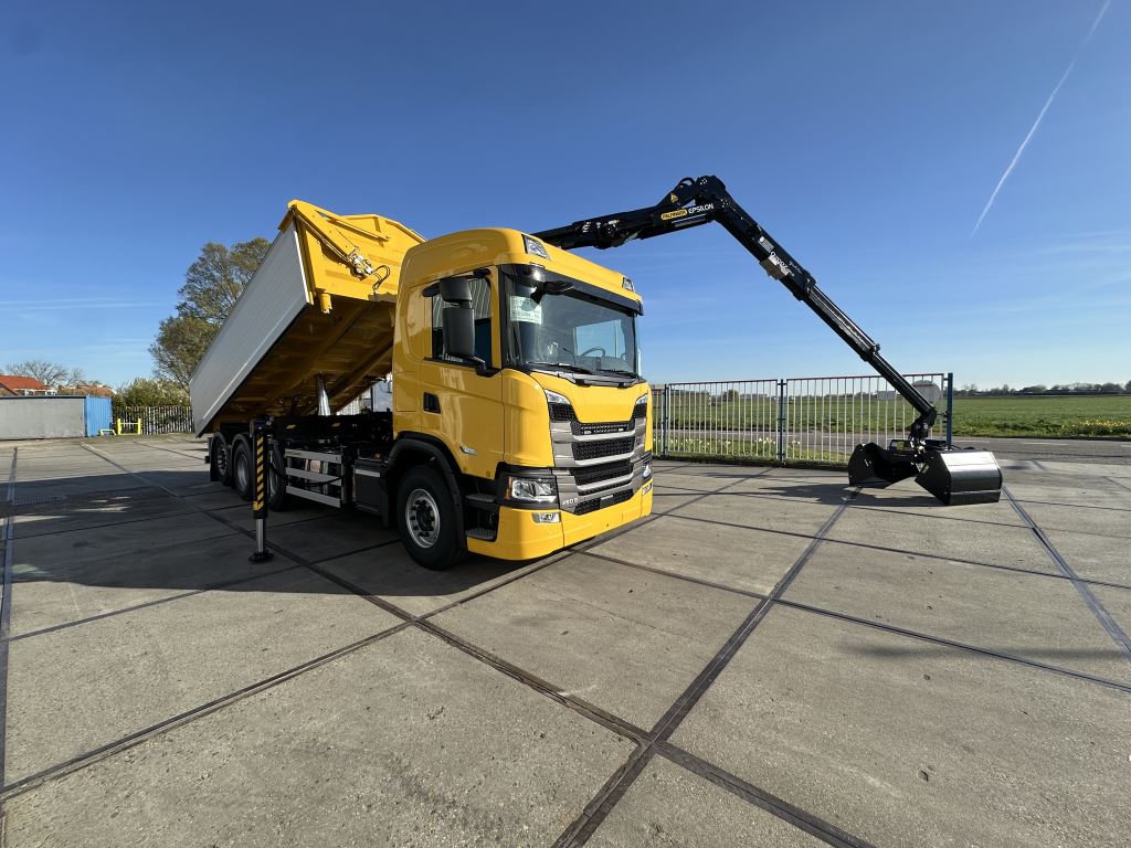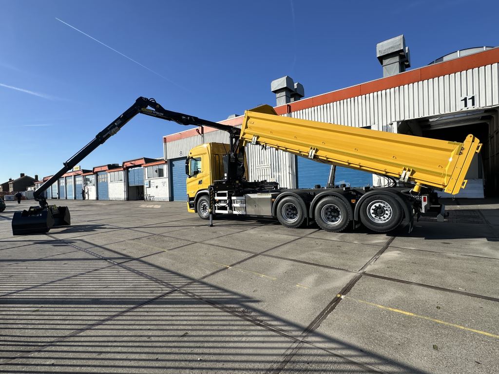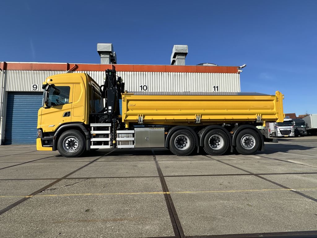 Scania R500 8×4 met Palfinger Epsilon kraan en 2-zijden kipper