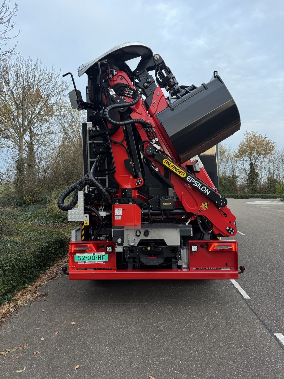 De truck is daarnaast uitgerust met een Epsilon Q170Z95TR autolaadkraan met een hydraulisch bereik tot circa 9,4 meter, ontworpen voor zware werkomstandigheden en efficiënt laden en lossen.