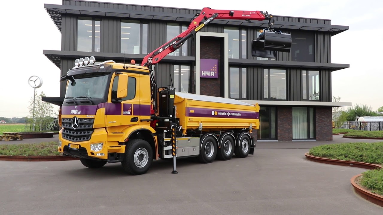 Voor H4A Infratechniek hebben we dit mooie stuk gereedschap mogen bouwen. We hebben dit gedaan in samenwerking met Automotions Mercedes-Benz en Groosman Bedrijfswagens. De basis van dit voertuig is de Mercedes-Benz Arocs 3245 LK 8×4. Hier hebben wij een tweezijdige Palfinger Nederland (PN) kipper met Epsilon Z-Kipperkraan op gemonteerd.
